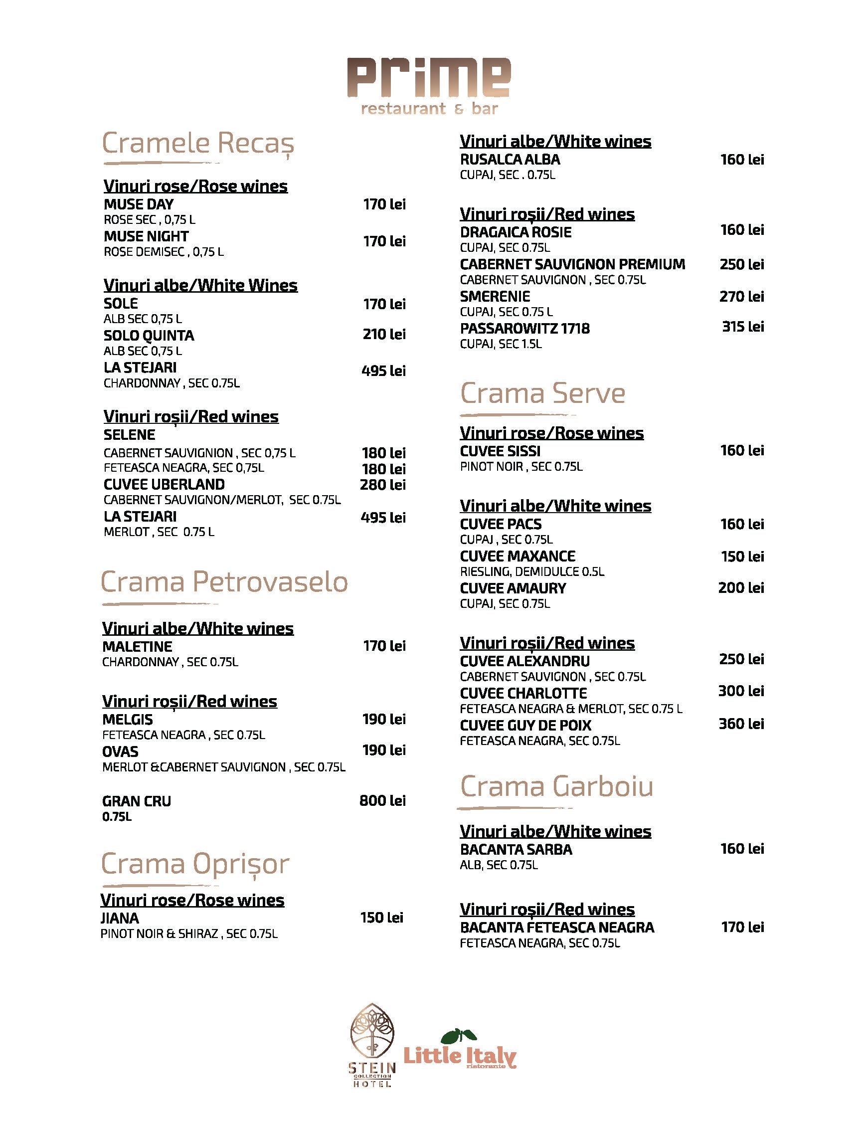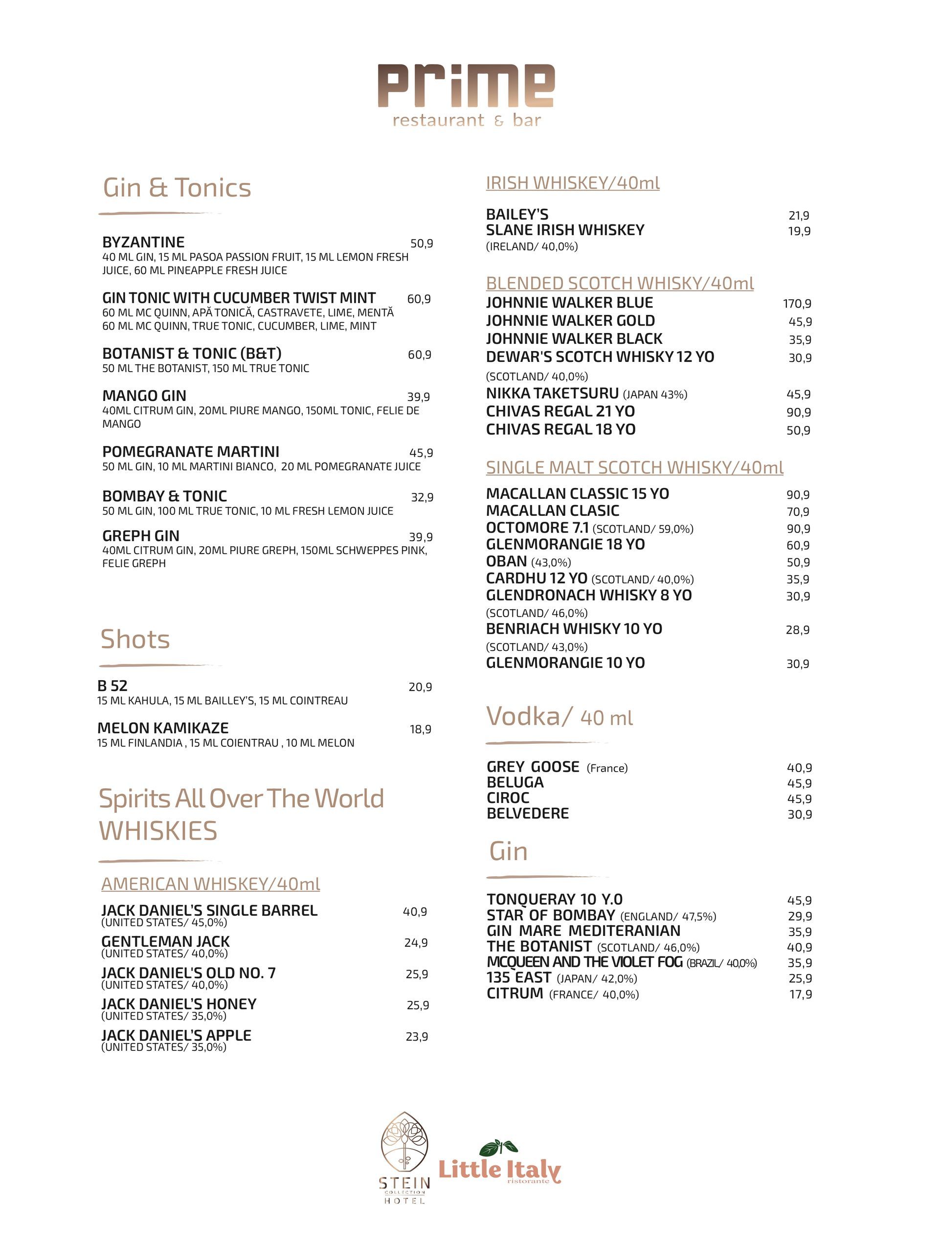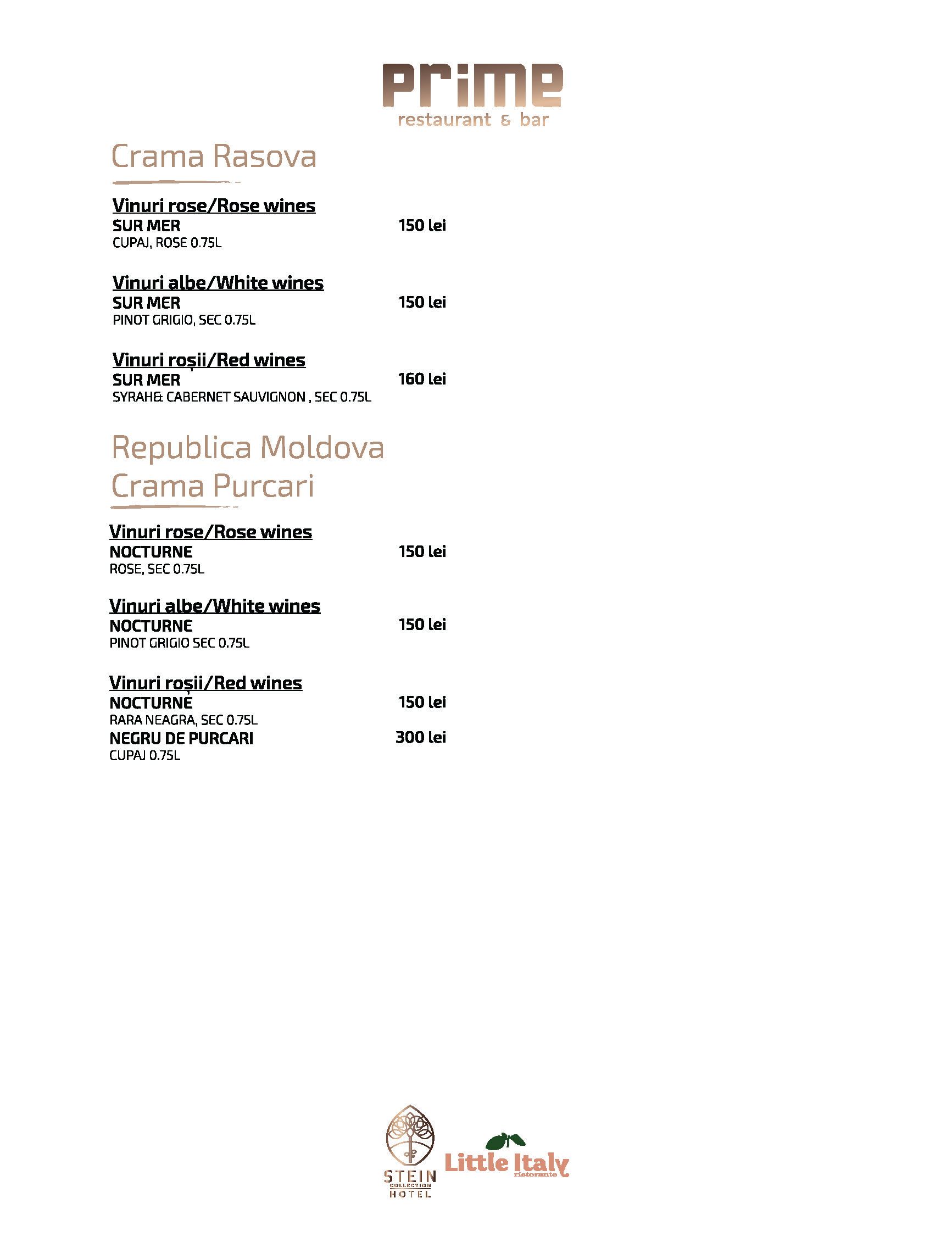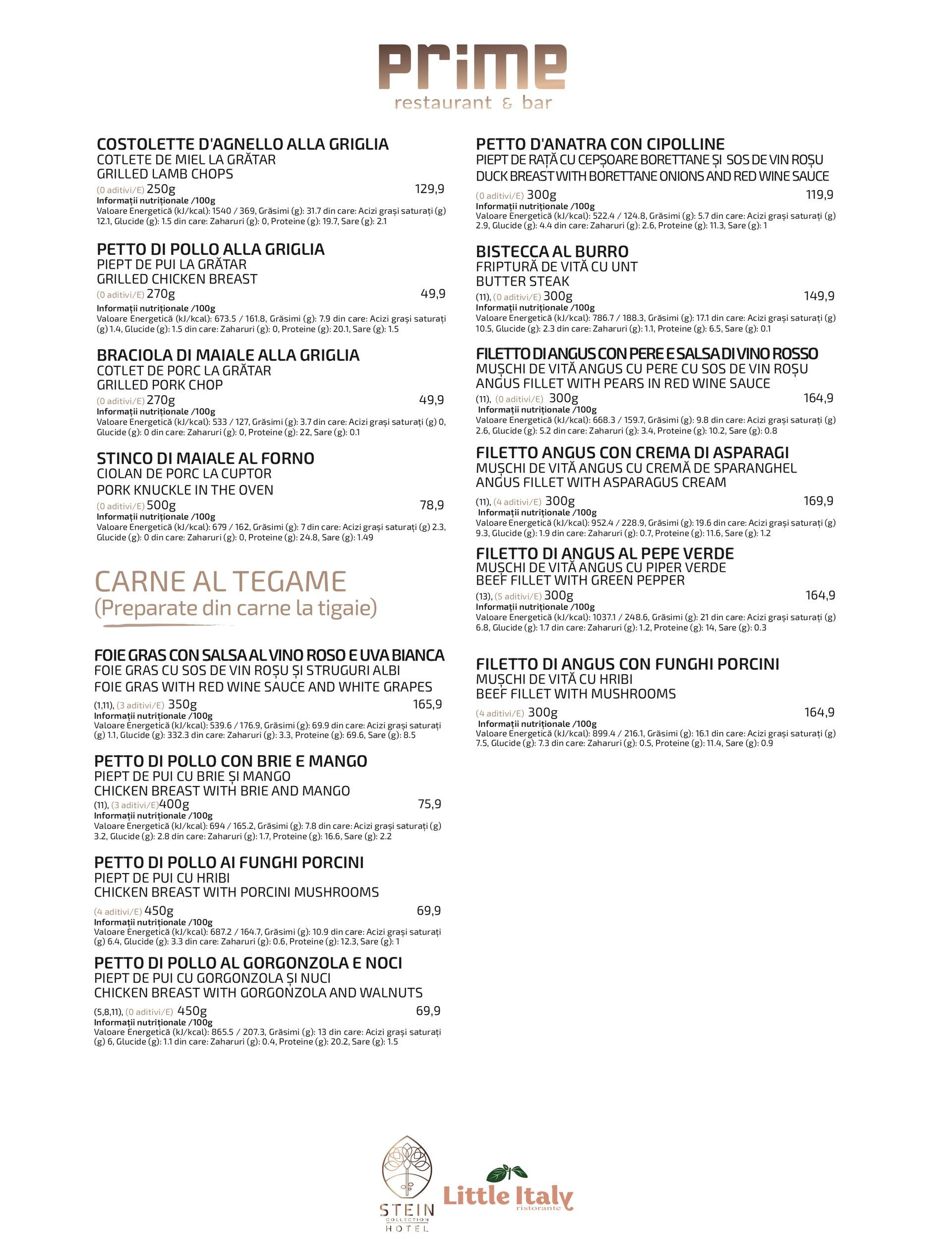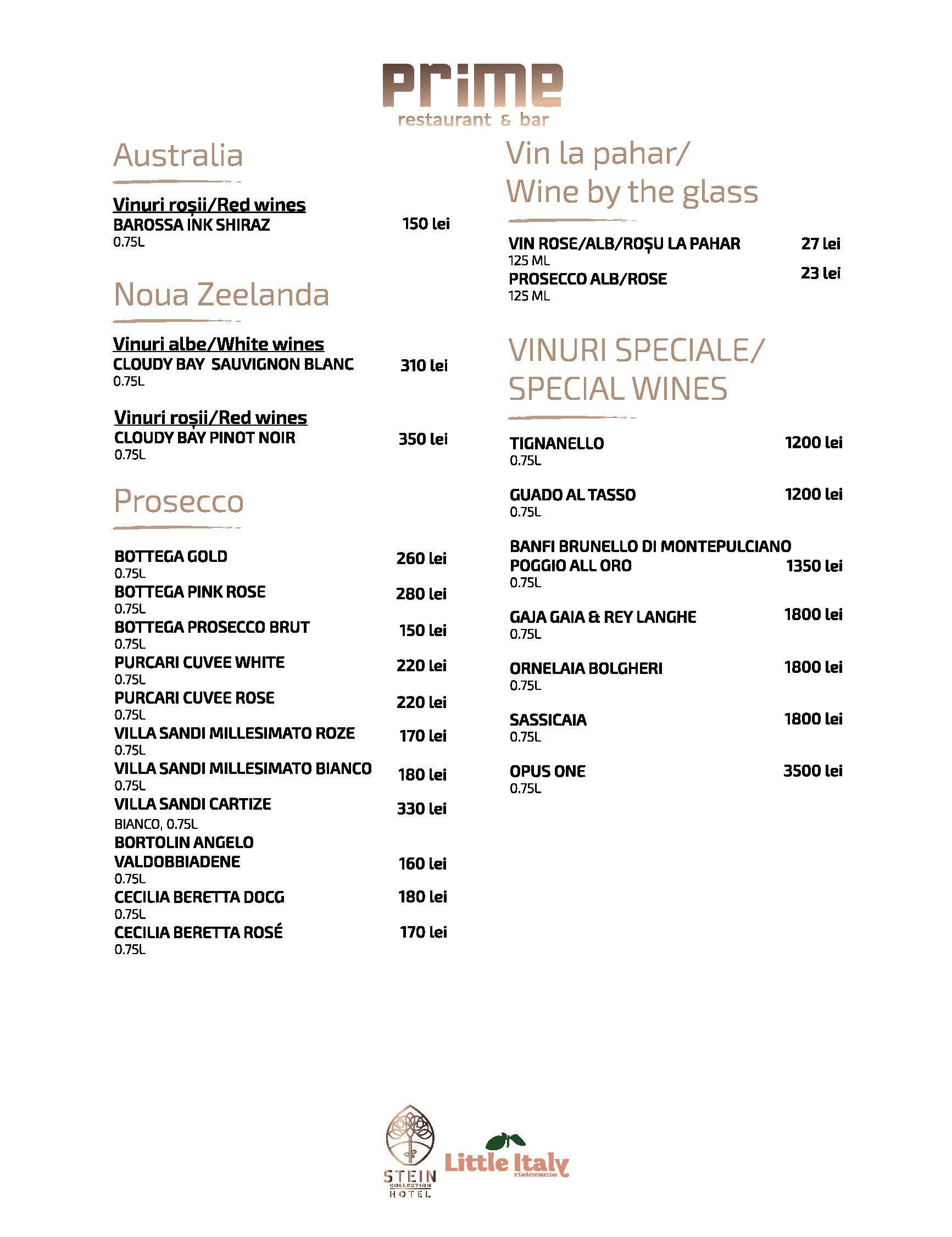 Aici, la The Prime, veți găsi un meniu cu adevărat italian și mediteranean, dezvoltat de bucătarii noștri experți care creează interpretări moderne ale rețetelor clasice italiene și mediteraneene. Folosim doar cele mai bune ingrediente pentru a ne asigura că oaspeții noștri experimentează adevăratele arome ale Mediteranei.